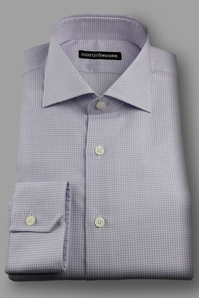 Jasno Fioletowa Bawełniana Męska Koszula Twill w Kratkę z Klasycznym Kołnierzem